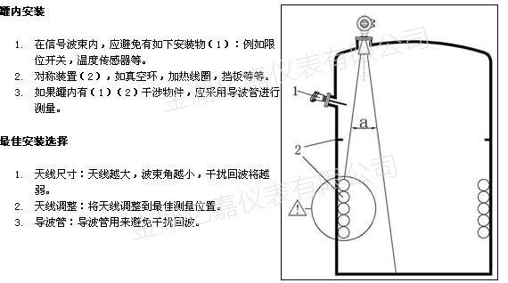 YJD800系列雷達(dá)液位計(jì)安裝須知: